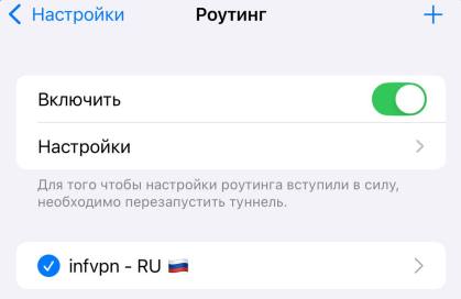 После успешного добавления, перейдите в приложении Streisand -> Настройки -> Роутинг -> Выбираем infvpn RU -> Включить
