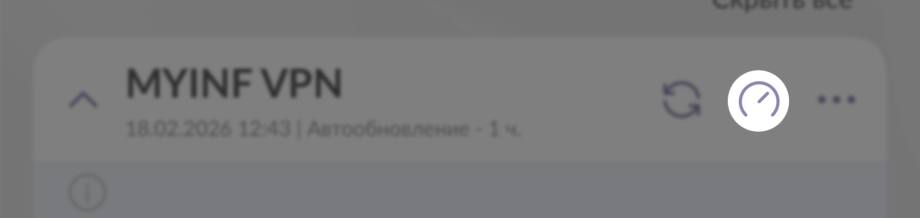 Перед началом использования подписки, нужно сделать пинг для выявления рабочей локации на вашем операторе. Для этого на отключенном соединение нужно нажать значок "спидометра"