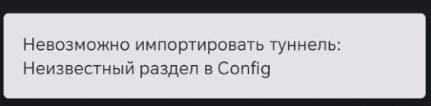 Если возникает ошибка «Невозможно импортировать туннель: неизвестный раздел в config»: